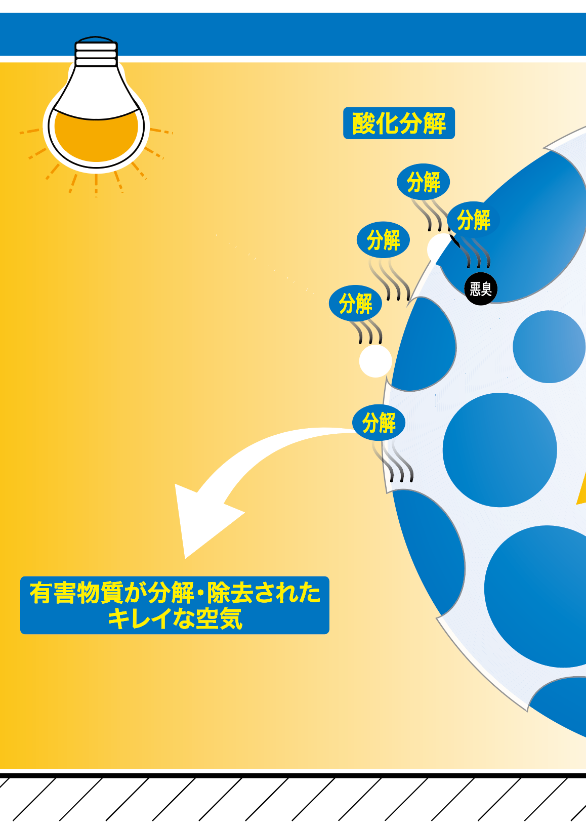 必要なものは、「光のエネルギー」だけ。あとは、自動的に24時間、365日、空間や物質を清潔に保ち続けます。 “フォトンフレッシュ”(PF)は、コーティングした物質を「光のエネルギーだけで働く空気清浄機」へと変える ”屋根の無い病院”である、軽井沢の冷涼な気候、風土から、生まれたブランドです。